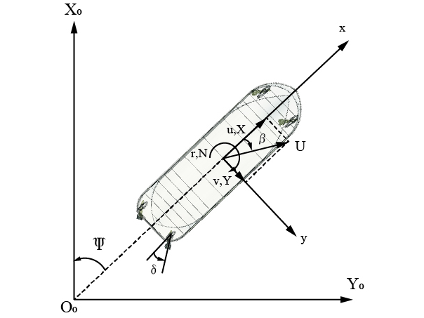 必要な流体力をデータベース化しましたので、最後に操縦運動方程式を解き、ロボット漁船の操船シミュレーションを行っていきます。風や流れは任意に与えられるようにして、運動方程式の外力項に加えてシミュレーションします。